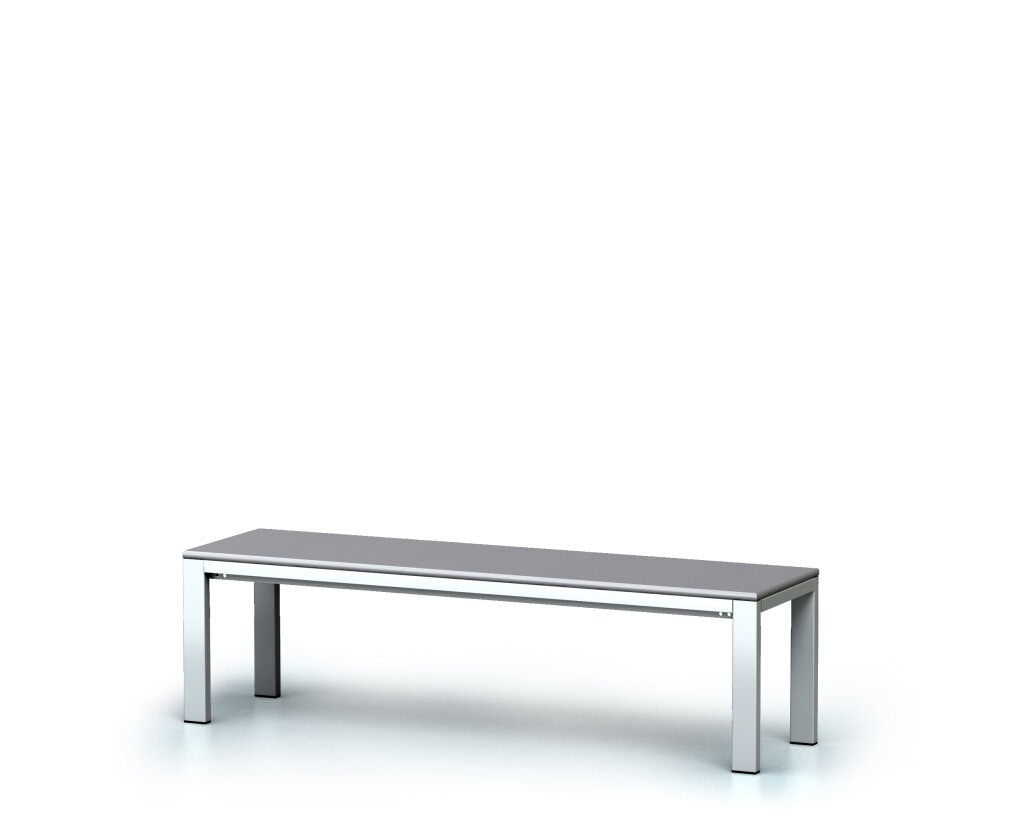 Bænkens ben er lavet af robuste rektangulære rør, der måler 60×30 mm. Denne konstruktion sikrer ikke kun stabilitet, men giver også bænken en moderne, industriel æstetik. Understellet i lysegrå RAL7035 passer perfekt ind i forskellige indretningsstile og giver en tidløs elegance, der ser godt ud i både moderne og klassiske omgivelser.