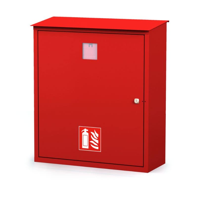 En cylindrisk lås sikrer brandslukkerne og forhindrer uautoriseret adgang. Den integrerede nøgleboks i døren gør det nemt at opbevare nøglen, så den altid er lige ved hånden. Skabet er også udstyret med et hul til en plombe, som giver ekstra sikkerhed og gør det lettere at kontrollere brandslukkerne korrekt.