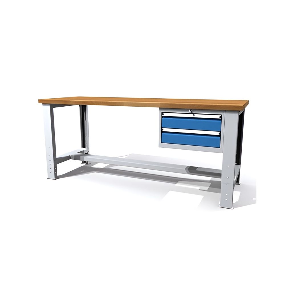 Den højdejusterbare arbejdsbænk med 2 skuffer og en massiv bøgetræsplade er en ægte allrounder til ethvert værksted. Med sine mål på 700-1055x2000x700 mm giver det ikke kun en stor arbejdsflade, men også mulighed for at justere højden individuelt. Det er særligt praktisk for at muliggøre ergonomisk arbejde og forebygge rygsmerter. Den lysegrå farve giver arbejdsbænken et moderne og tidløst design, der passer perfekt ind i ethvert miljø.