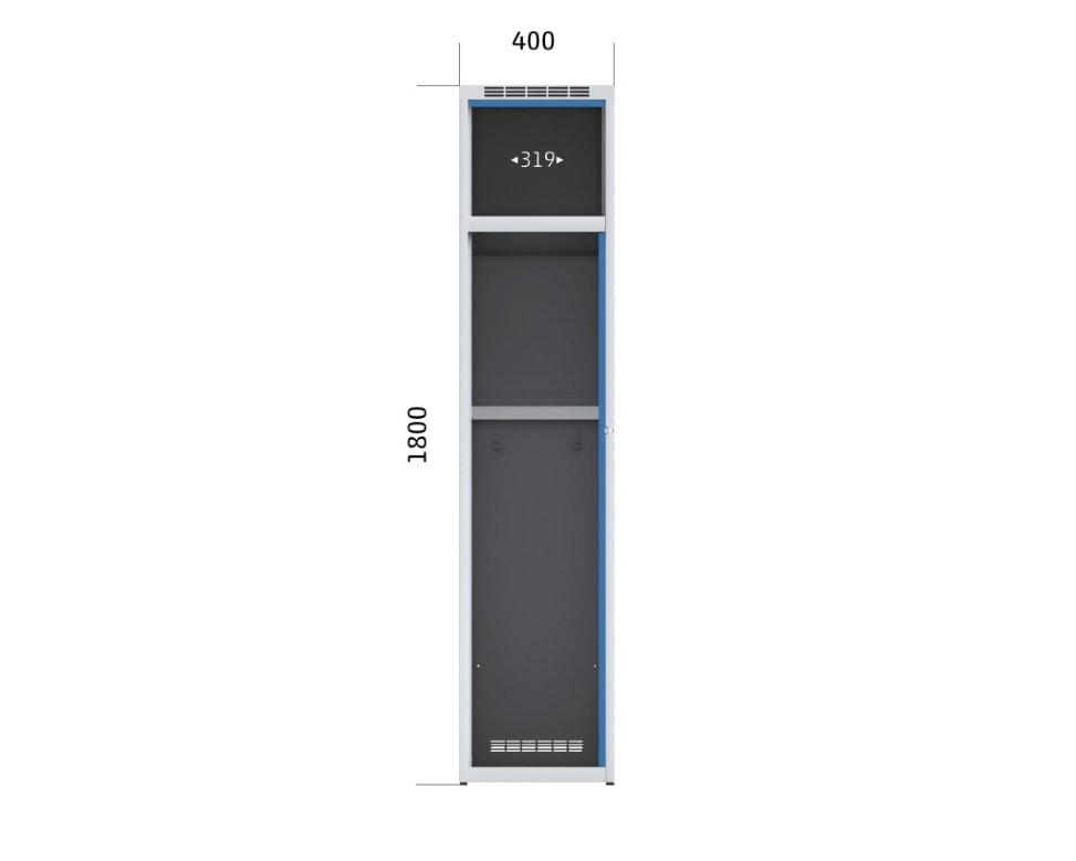 Skabet leveres med en cylinderlås, der har samme nøgleprofil som i den centrale dør i udleveringsskabet, hvilket forenkler administrationen og sikkerheden i dit anlæg. Skabets design er både funktionelt og æstetisk tiltalende: kroppen er færdig i en neutral lysegrå (RAL7035), mens farven på dørene og klappen kan tilpasses efter dine ønsker.
