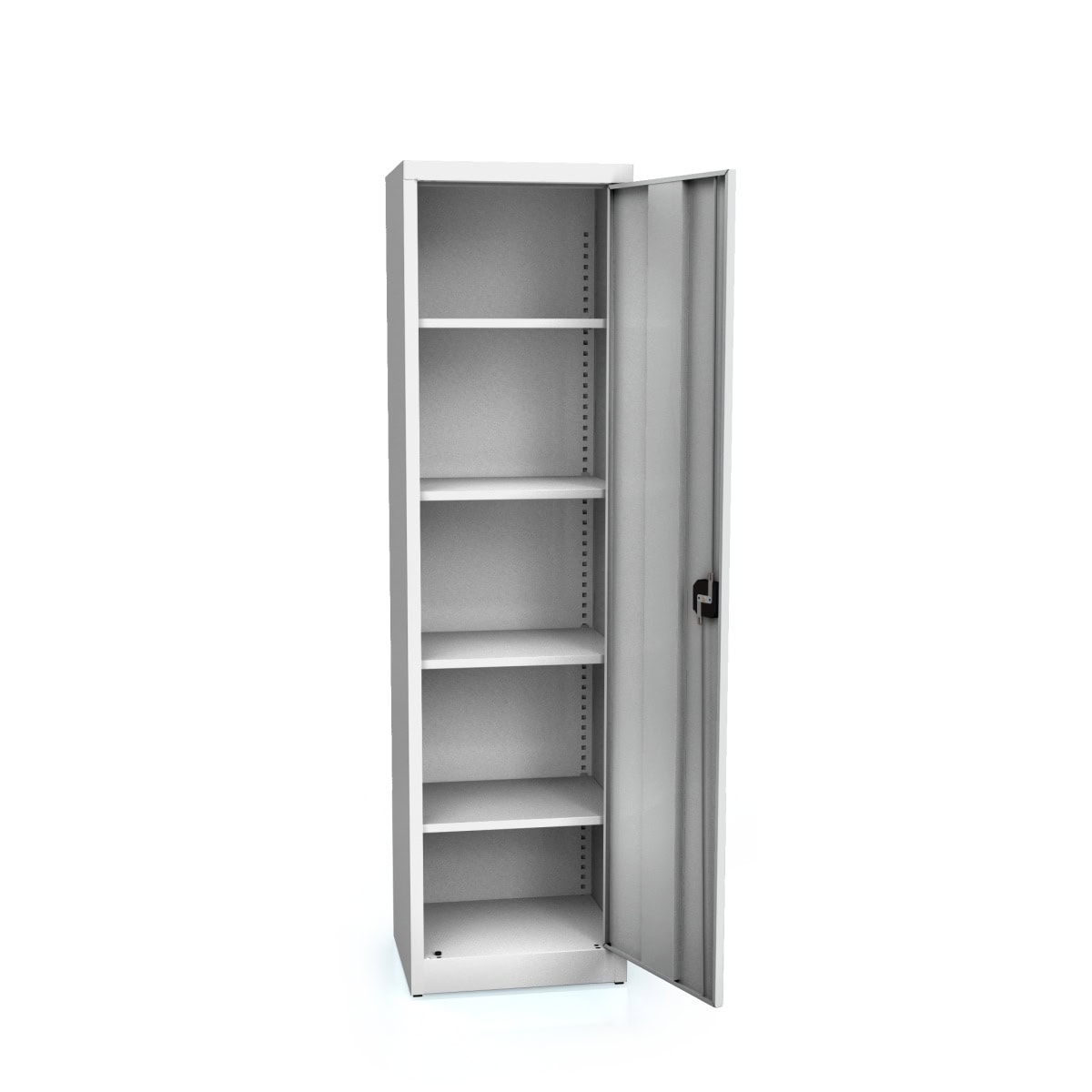 Den Kabinet af metalplader med én dør og målene 1800x490x400 mm (HxBxD) er den ideelle løsning for alle, der er på udkig efter en robust og funktionel opbevaringsmulighed. Den svejsede konstruktion sikrer stabilitet og holdbarhed, mens den 80 mm høje sokkel giver skabet en behagelig arbejdshøjde.