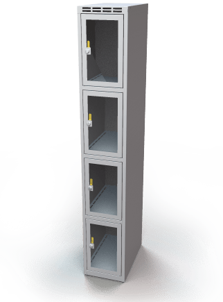 Rumskab i metal med plexiglasdøre 4 rum kan udstyres med den høje sokkel (højde 160 mm i stedet for 40 mm)