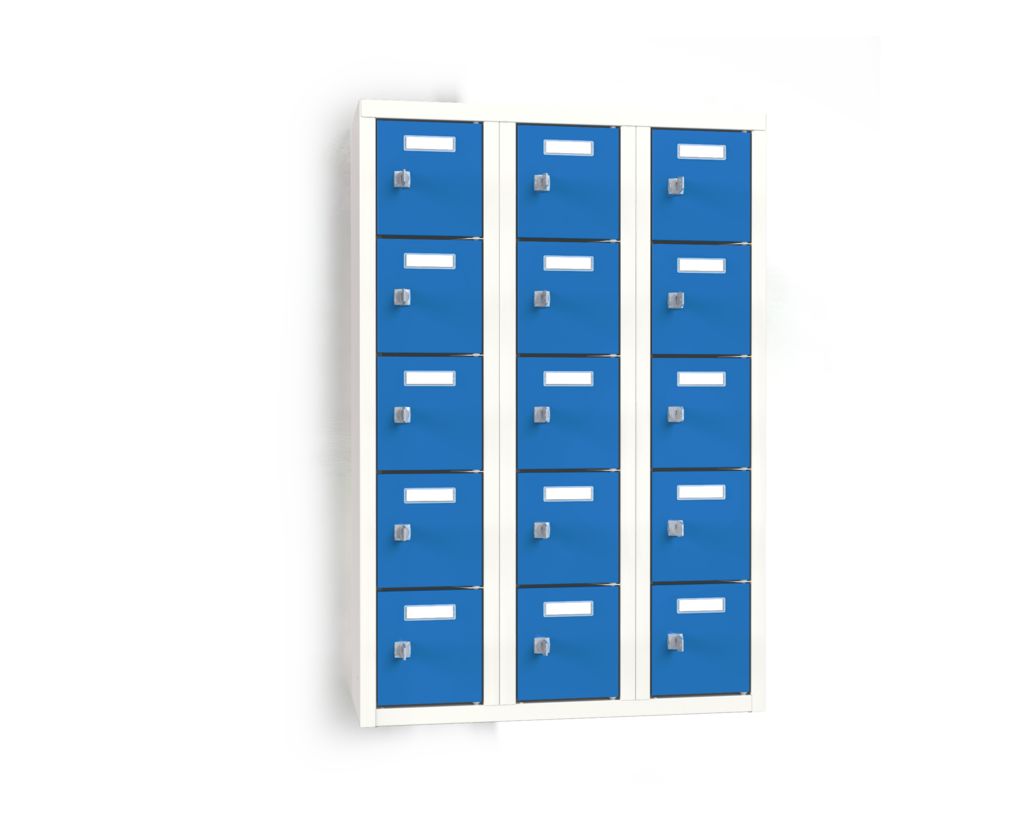Det lille miniskab med målene 911x600x200 mm (HxBxD) og 15 rum er en ideel løsning til pladsbesparende og sikker opbevaring af personlige ejendele. Det er ideelt til steder som kontorer, skoler, fitnesscentre eller endda i private rum.