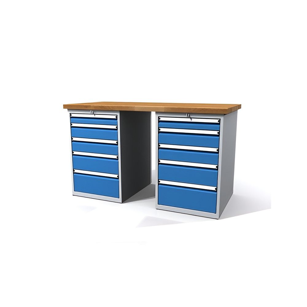 Et særligt højdepunkt ved dette arbejdsbord er det integrerede skuffeskab Profi DKP272717U5, som er udstyret med fem skuffer. Disse giver tilstrækkelig opbevaringsplads til værktøj og materialer, der er nødvendige i ethvert værksted. Skufferne fås i forskellige højder: en skuffe med 2U, to skuffer med 3U, en skuffe med 4U og en skuffe med 5U. Det giver mulighed for fleksibel organisering og hurtig adgang til alle de redskaber, du har brug for.