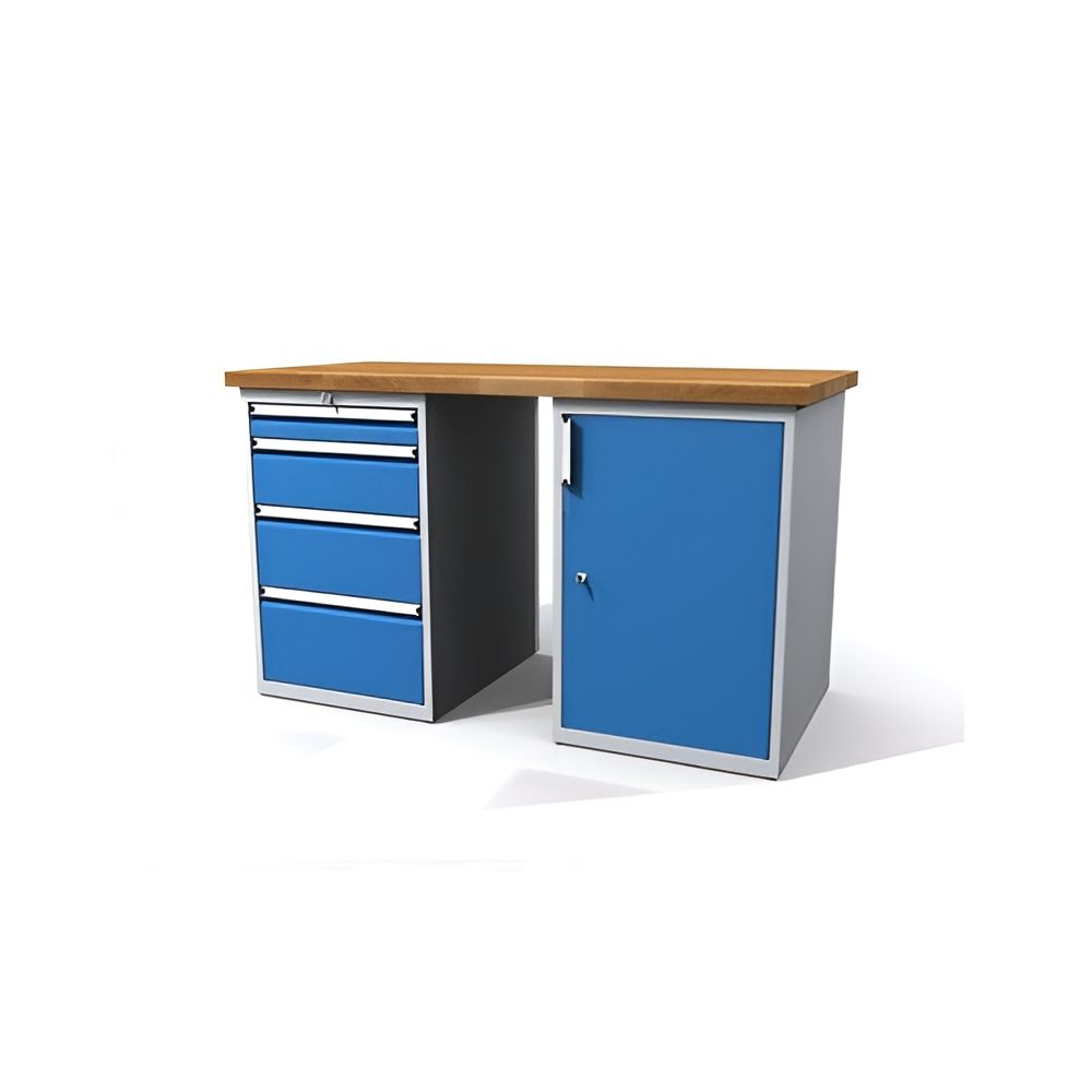 Dette arbejdsbord er det ideelle valg for håndværkere, der sætter pris på kvalitet og holdbarhed. Det tilbyder ikke kun en robust arbejdsflade, men også tilstrækkelig opbevaringsplads til værktøj og materialer. Kombinationen af skuffe- og dørskab giver optimal organisering og hurtig adgang til alle de redskaber, du har brug for.
