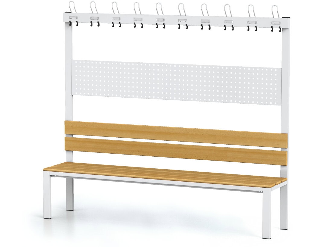 Omklædningsbænken med knagerække er ikke kun funktionel, men også et ægte blikfang. Den kombinerer materialer af høj kvalitet med sofistikeret design og tilbyder en holdbar løsning til ethvert omklædningsrum. Uanset om det er i skoler, sportsklubber eller fitnesscentre - denne bænk opfylder alle krav til moderne og praktisk indretning.