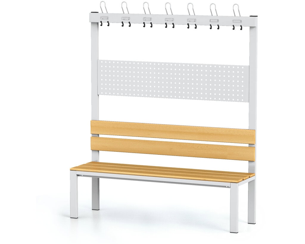 Denne bænk til omklædningsrummet er et fremragende valg for virksomheder, der sætter pris på attraktive og funktionelle møbler. Den kombinerer komfort og funktionalitet og hjælper både kunder og medarbejdere med at føle sig godt tilpas. Den klare oliebehandling af bøgetræslamellerne sikrer også en plejevenlig overflade, der er nem at rengøre og forbliver smuk i lang tid.