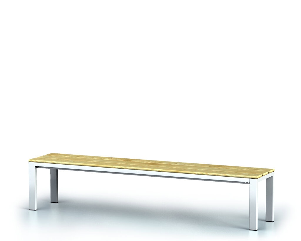 Det særlige ved denne bænk er benene, som er lavet af rektangulære rør, der måler 60×30 mm. Dette design sikrer ikke kun stabilitet, men giver også bænken et moderne og tiltalende udseende. Understellet i lysegrå RAL7035 passer perfekt ind i ethvert miljø og giver en tidløs elegance, der kan kombineres med forskellige indretningsstile.