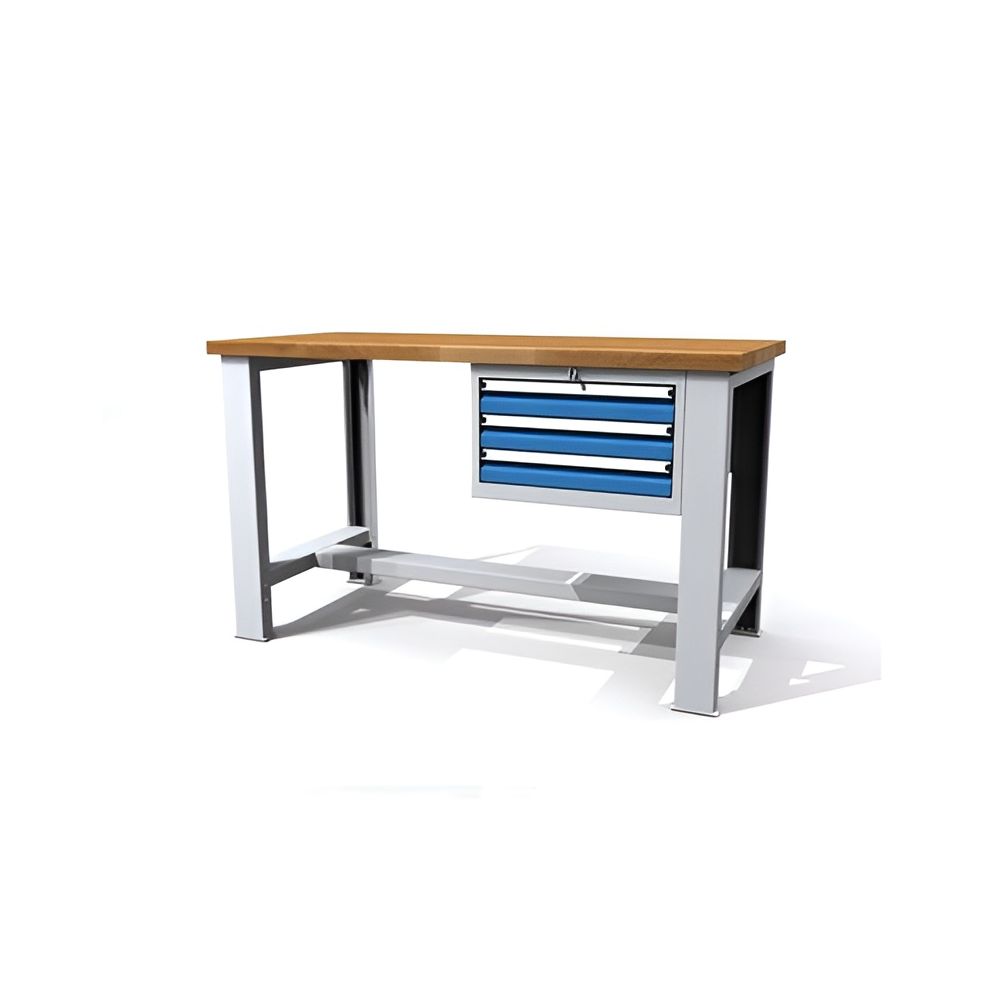 Det robuste arbejdsbord med tre skuffer og en 40 mm tyk bøgeplade er den ideelle løsning for alle, der sætter pris på kvalitet og funktionalitet. Med sine mål på 880x1500x700 mm giver dette bord tilstrækkelig plads til en bred vifte af arbejde og er ideelt til professionel brug i værksteder såvel som til privat brug i hobbyrummet.