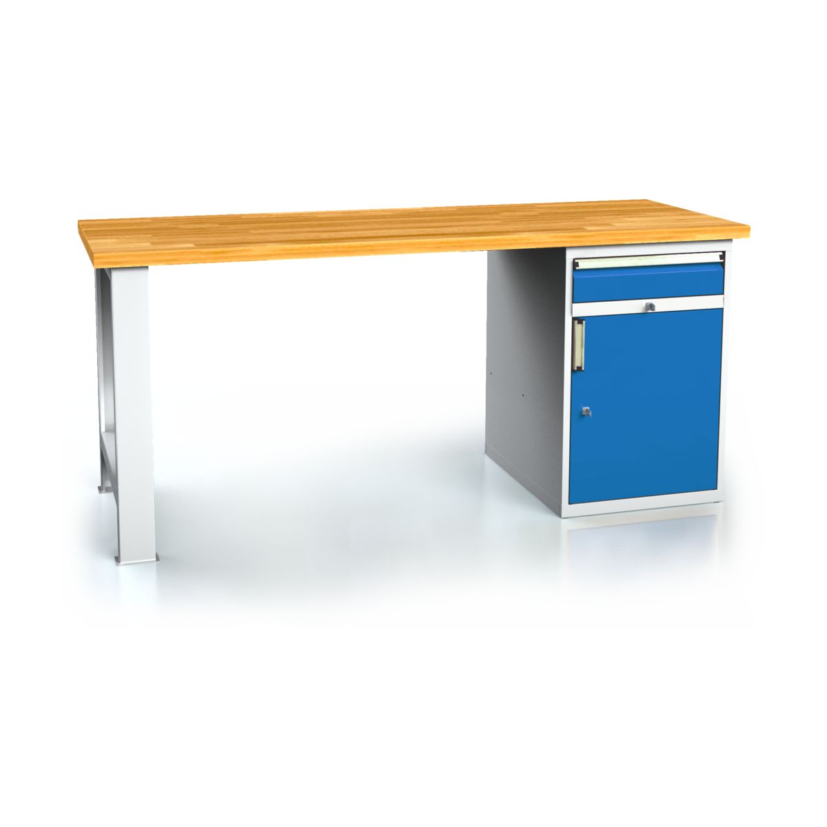 Et robust arbejdsbord er midtpunktet i ethvert værksted eller produktionsmiljø. Vores model med skuffekabinet og to døre tilbyder ikke kun stabilitet, men også sofistikeret funktionalitet, der gør det daglige arbejde lettere. Den massive bøgetop med en tykkelse på 40 mm er ikke kun et visuelt højdepunkt, men også ekstremt holdbar. Takket være behandlingen med linolielak er overfladen vandtæt og holdbar, hvilket gør den ideel til krævende arbejdsmiljøer.