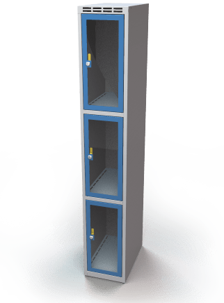 Rumskab i stål Plexiglasdøre Møntindkastlås 3 rum kan udstyres med den høje sokkel (højde 160 mm i stedet for 40 mm)
