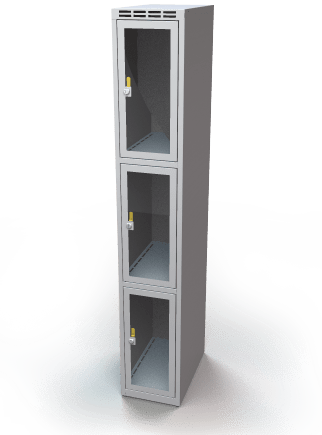 Skab i metal med plexiglasdøre 3 rum kan udstyres med den høje sokkel (højde 160 mm i stedet for 40 mm)
