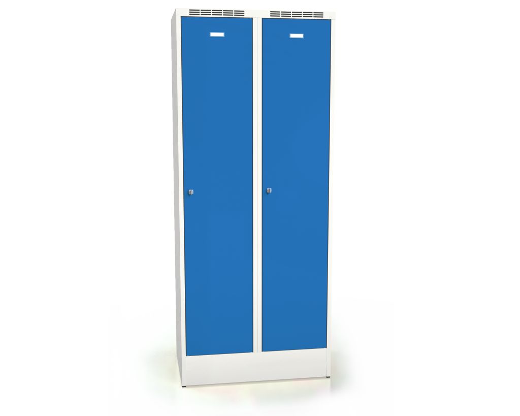Dette skab med hængelås er ikke kun kendetegnet ved øget komfort og høj kvalitet, men kan også bruges af to personer på samme tid. Det er dog også ideelt til brug af en enkelt person til såkaldt sort/hvid-adskillelse. Metalskabet er stabilt takket være en robust base eller alternativt fire fødder. Dørene kan have en anden RAL-farve, så man f.eks. hurtigere kan orientere sig fra skab til skab, mens kroppen er holdt i lysegrå.