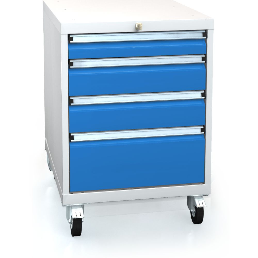 Det mobile skuffeskab på 82x55x68 cm er en alsidig følgesvend til værkstedet, laboratoriet eller kontoret. Med fire skuffer i forskellige størrelser - 1x2U, 2x3U og 1x5U - giver det en gennemtænkt organisering af værktøj, smådele eller dokumenter. Hver skuffe kan rumme op til 90 kg og kan betjenes nemt og sikkert takket være 80%-udtrækket. Den pulverlakerede overflade sikrer holdbarhed og et moderne look, mens kroppen i lysegrå RAL7035 ser diskret og tidløs ud. Skuffefronterne kan tilpasses, så de passer til enhver indretningsstil.