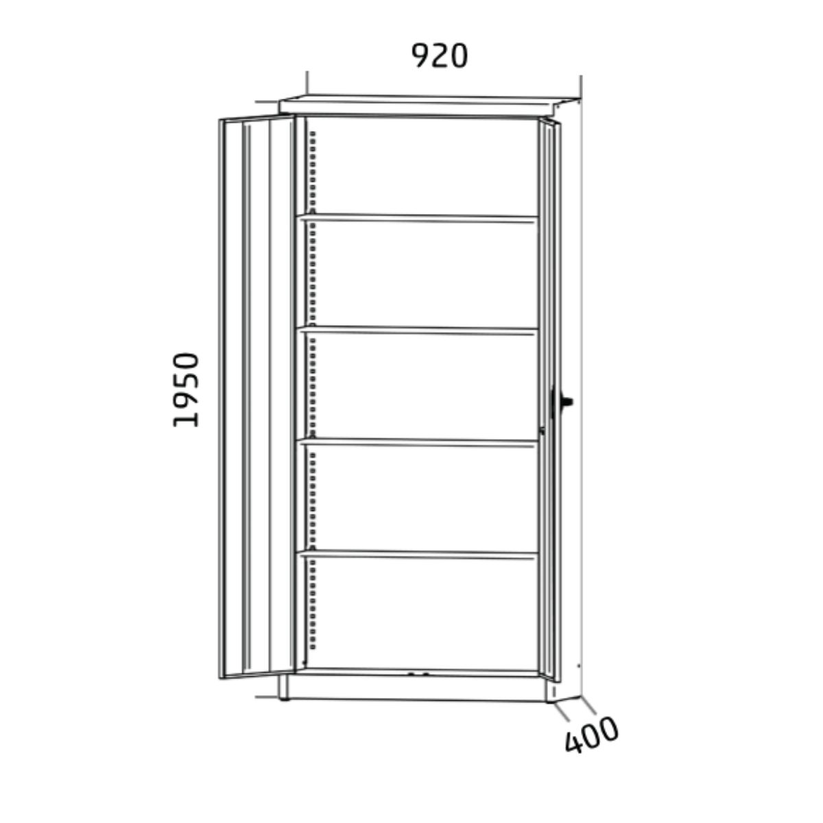 Den Universal metalskab med glasdøre er den ideelle løsning for alle, der sætter pris på funktionalitet og attraktivt design. Med sine kompakte mål på 1950x920x400 mm (HxBxD) passer det perfekt ind i forskellige rum, uanset om det er på kontoret, lageret eller værkstedet.