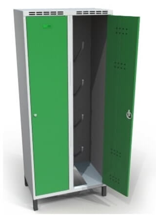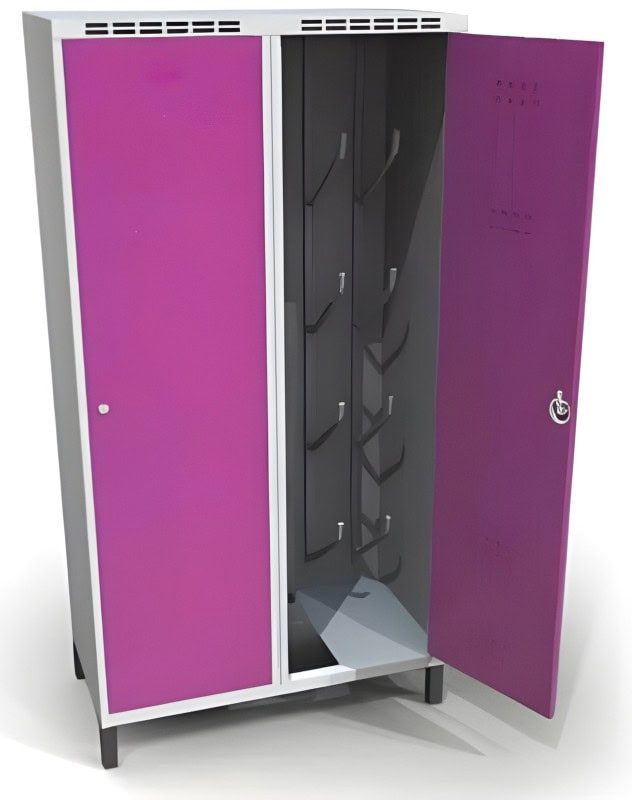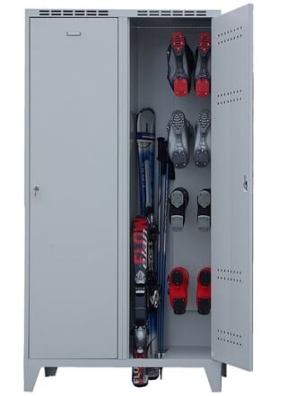 Skiskabene af galvaniseret stålplade er optimeret til opbevaring af ski, snowboards, skistøvler og stave. Takket være den robuste svejste konstruktion, de dobbeltvæggede døre og det effektive ventilationssystem garanterer de maksimal sikkerhed og optimal beskyttelse mod fugt og tyveri.