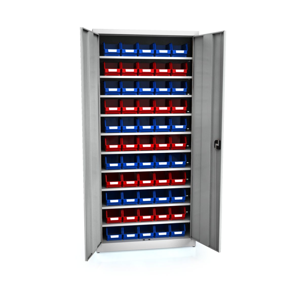 Zusätzlich zu den Fachböden enthält der Schrank 30 Kasten SB2C mit Außenmaßen von 73x103x166 mm. Diese praktischen Behälter sind ideal für die Aufbewahrung kleinerer Teile und Zubehör. Sie ermöglichen eine klare Trennung und Organisation Ihrer Materialien, sodass Sie schnell finden, was Sie benötigen. Die Kasten sind robust und leicht zu handhaben, was die Effizienz bei der Arbeit steigert.