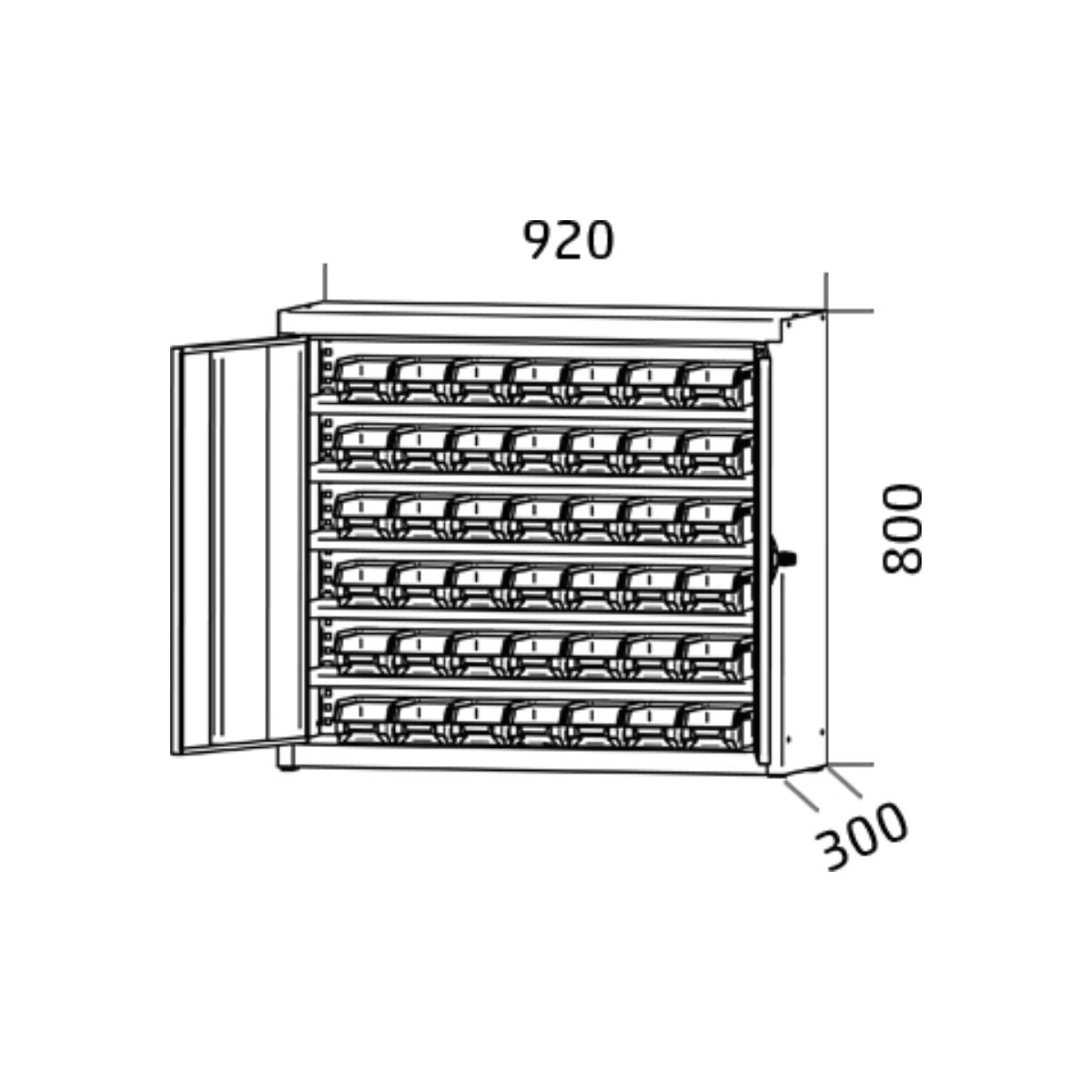 Der Materialschrank mit Behältern ist die ideale Lösung für alle, die Ordnung und Effizienz in ihrem Arbeitsumfeld schätzen. Mit kompakten Außenmaßen von 800x920x300 mm (HxBxT) bietet dieser Schrank nicht nur ausreichend Stauraum, sondern auch vielseitige Nutzungsmöglichkeiten. Er kann sowohl an der Wand aufgehängt als auch als Aufsatz verwendet werden, was ihn zu einer flexiblen Ergänzung für jede Werkstatt oder Lagerräume macht.