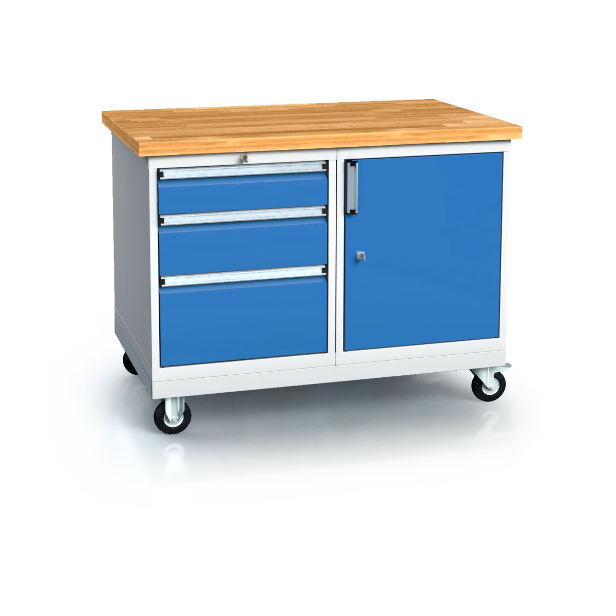 Besonders hervorzuheben sind die drei Schubladen und die Tür, die ausreichend Stauraum für Werkzeuge und Materialien bieten. Die Schubladen sind in zwei Varianten erhältlich: Variante A mit 80% Auszug und einer Tragfähigkeit von 90 kg pro Schublade sowie Variante B mit 100% Auszug und einer Tragfähigkeit von 65 kg pro Schublade. Diese Flexibilität ermöglicht es Ihnen, die Werkbank genau an Ihre Bedürfnisse anzupassen. Die komfortable ALU Griffleiste mit Beschriftungsfeld sorgt dafür, dass Sie stets den Überblick behalten und alles griffbereit haben.