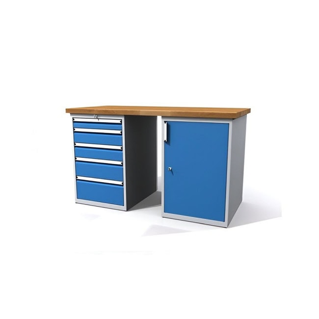 Ein besonderes Highlight dieser Werkbank ist der integrierte Schubladenschrank DKP272717U5. Mit fünf Schubladen in unterschiedlichen Höhen (1x 2U, 2x 3U, 1x 4U, 1x 5U) bietet er ausreichend Stauraum für Werkzeuge und Materialien. Die Schubladen sind in zwei Varianten erhältlich: Variante A mit 80% Auszug und einer Tragfähigkeit von 90 kg pro Schublade, sowie Variante B mit 100% Auszug und einer Tragfähigkeit von 65 kg pro Schublade. Beide Varianten sind mit einem Zentralverschluss und einem Zylinderschloss ausgestattet, was für zusätzliche Sicherheit sorgt. Die kippsichere Konstruktion und die komfortablen ALU Griffleisten mit Beschriftungsfeld machen die Handhabung besonders angenehm.