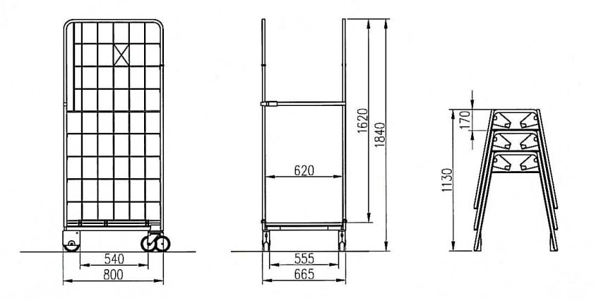 Hochwertiger und robuster Rollbehälter, 2-seitig, nestbar, A-Gestell