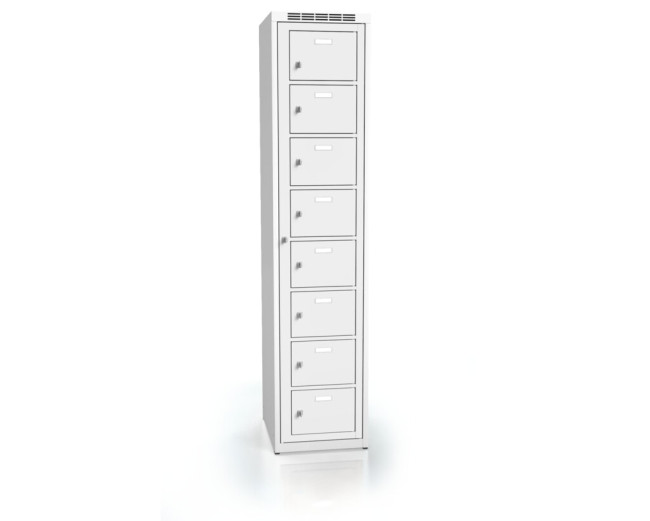 Schließfachschrank mit Zentraltür und 8 Fächern kann ohne Etikettenrahmen, mit glatten Türen produziert werden (ohne Aufpreis)
