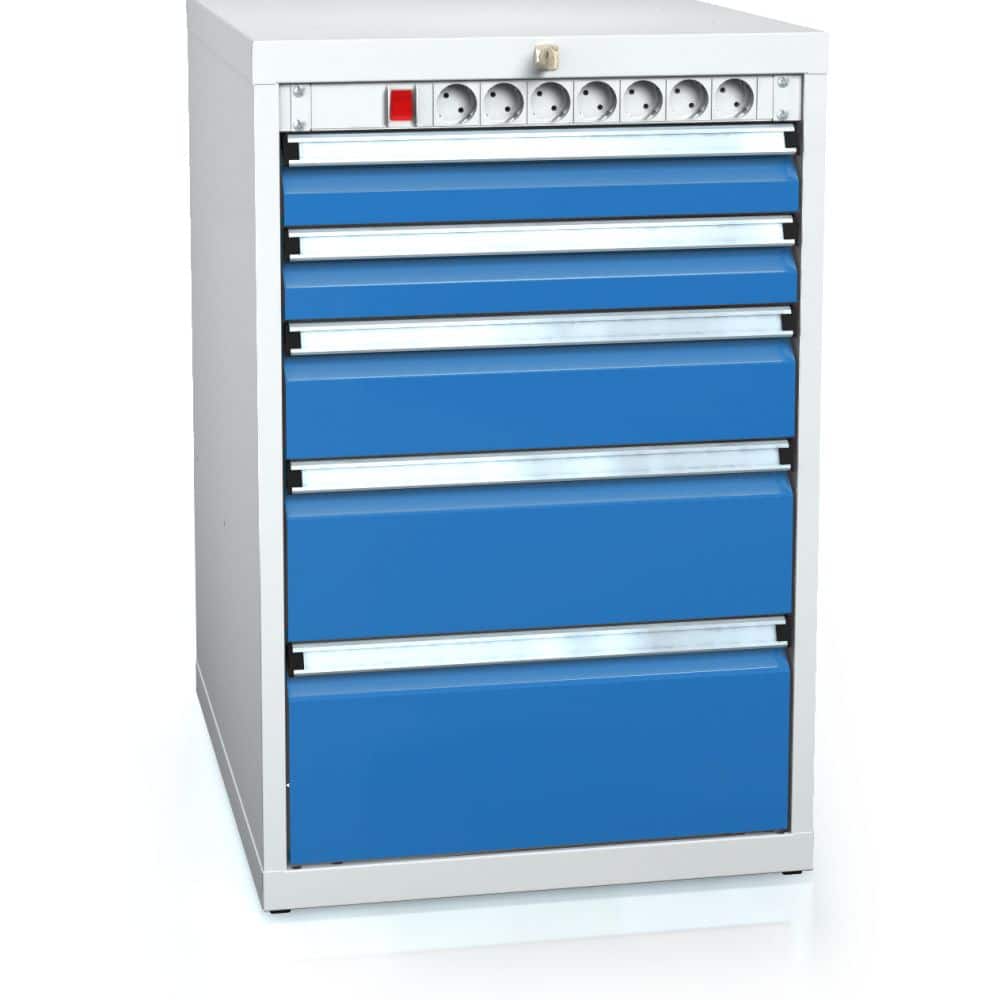 Der Schubladenschrank Profi 84x55x60 cm mit fünf großzügigen Schubladen bietet eine durchdachte Lösung für alle, die Wert auf Ordnung, Sicherheit und Flexibilität legen. Mit seinen Maßen von 840 x 555 x 600 mm (HxBxT) passt er optimal in Werkstätten, Labore, Technikräume oder professionelle Büroumgebungen, in denen strukturierte Aufbewahrung gefragt ist.