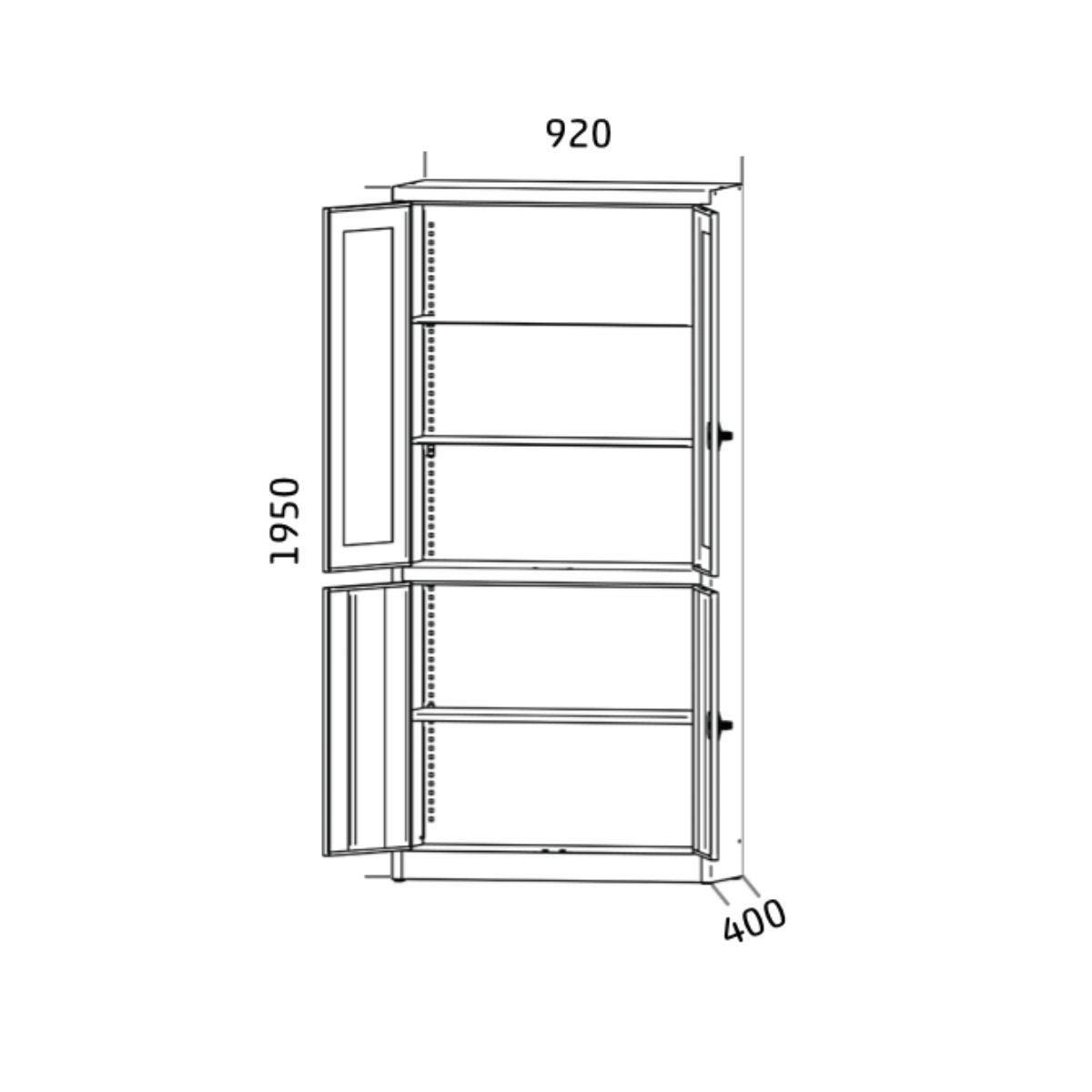 Die oberen Türausfüllungen bestehen aus hochwertigem Sicherheitsglas mit einer Stärke von 4 mm, das nicht nur für eine ansprechende Optik sorgt, sondern auch für Sicherheit und Langlebigkeit steht. Hinter den Glastüren befinden sich zwei Fachböden aus Sicherheitsglas, die nach einem 25 mm Raster verstellbar sind. Jeder dieser Böden hat eine Tragfähigkeit von bis zu 20 kg, was Ihnen die Flexibilität gibt, Ihre Gegenstände optimal zu organisieren und zu präsentieren.