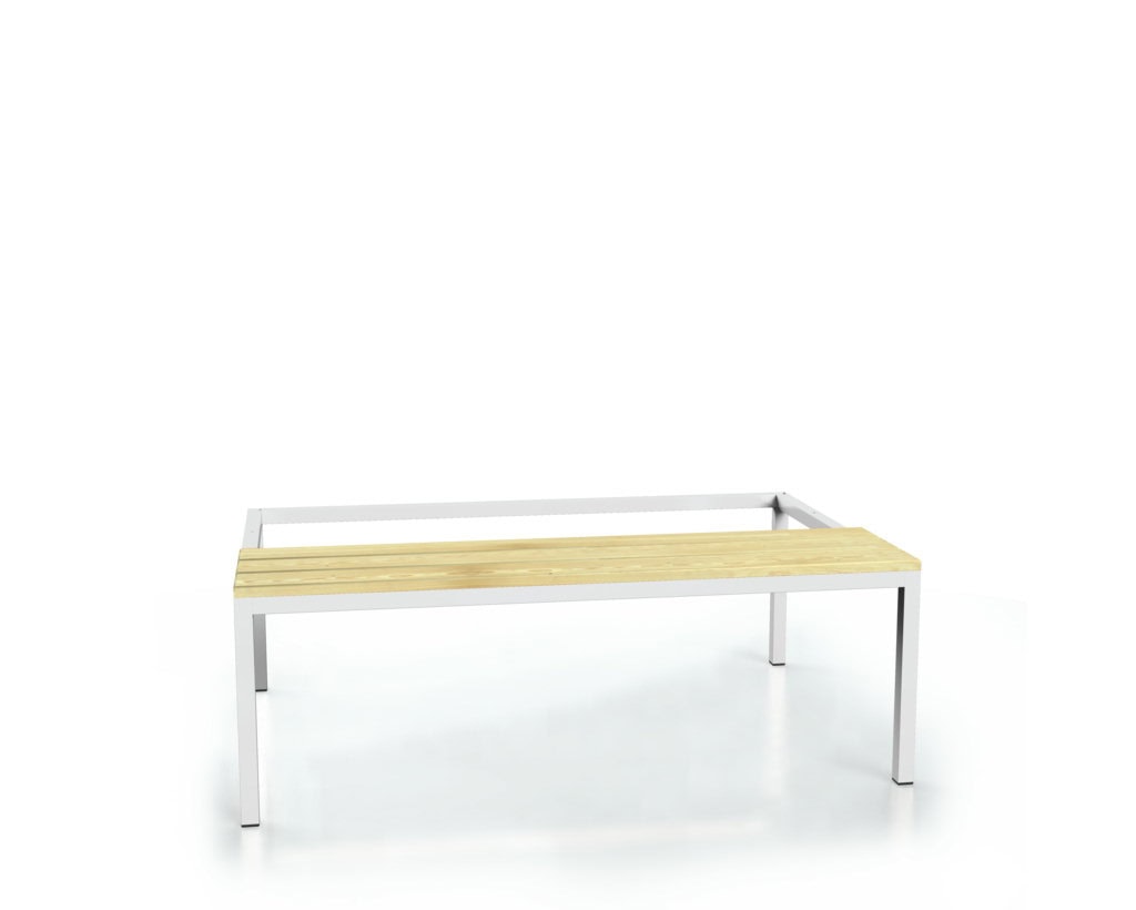 Das Untergestell aus robustem Vierkantrohr mit den Maßen 30×30 mm sorgt für Stabilität und Langlebigkeit. Die lichtgraue Farbe RAL7035 des Gestells verleiht der Bank eine moderne und zeitlose Optik, die sich nahtlos in verschiedene Einrichtungsstile einfügt. Ob im Flur, im Wohnzimmer oder im Büro – diese Sitzbank ist ein echter Blickfang.