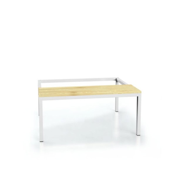 Das Untergestell aus robustem Vierkantrohr mit den Maßen 30×30 mm sorgt für Stabilität und Langlebigkeit. Die lichtgraue Farbe des Untergestells, RAL7035, verleiht der Bank eine moderne und zeitlose Optik, die sich mühelos in jede Einrichtung integrieren lässt. Diese Farbwahl ist nicht nur ästhetisch ansprechend, sondern auch praktisch, da sie unempfindlich gegenüber Verschmutzungen ist und leicht zu reinigen bleibt.