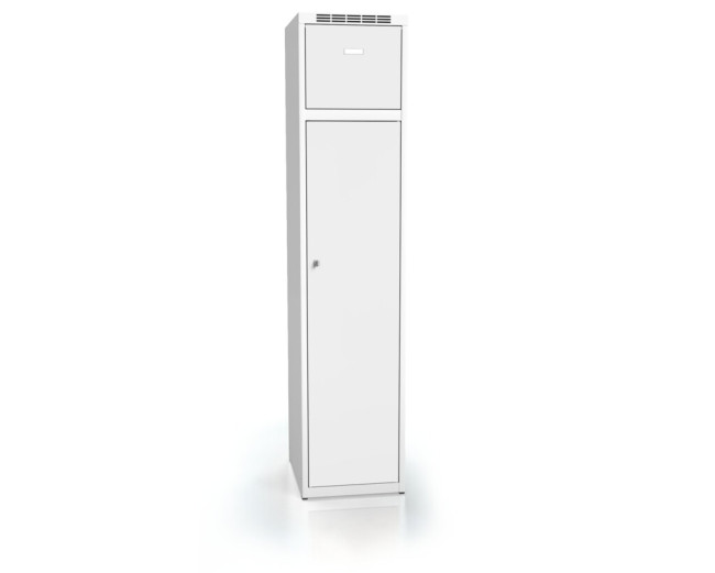 Der Schrank wird mit einem Zylinderschloss geliefert, das dasselbe Schlüsselprofil wie in der Zentraltür des Ausgabeschrankes hat, was die Verwaltung und Sicherheit in Ihrer Einrichtung vereinfacht. Das Design des Schranks ist sowohl funktionell als auch ästhetisch ansprechend: Der Korpus ist in einem neutralen Lichtgrau (RAL7035) gehalten, während die Farbe der Türen und der Einwurfklappe nach Ihren Wünschen anpassbar ist.