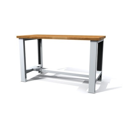 Die Werkbank zeichnet sich durch eine massive Buchenholzplatte mit einer Stärke von 40 mm aus, die für ihre Haltbarkeit und Widerstandsfähigkeit gegenüber intensiven Arbeitsbelastungen bekannt ist. Zwei feste Füße, jeweils 840 mm hoch, sorgen für eine stabile und sichere Basis, während die zusätzliche Strebe die Gesamtstabilität der Werkbank verstärkt.