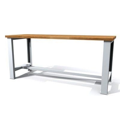 Die Werkbank verfügt über eine robuste, 40 mm starke Buchenholzplatte, die Langlebigkeit und Stabilität für alle Arten von Projekten gewährleistet. Zwei feste Füße mit einer Höhe von 840 mm bieten eine stabile und sichere Basis, während die zusätzliche Strebe die Gesamtstruktur verstärkt.