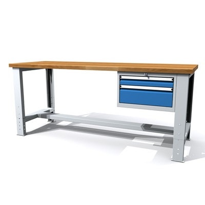 Die 40 mm starke Arbeitsplatte aus massivem Buchenholz bietet eine robuste und langlebige Oberfläche für alle Arten von Werkarbeiten. Dank der zwei verstellbaren Füße (660-1015 mm) lässt sich die Höhe des Tisches flexibel einstellen, was zu einer verbesserten Ergonomie am Arbeitsplatz beiträgt.