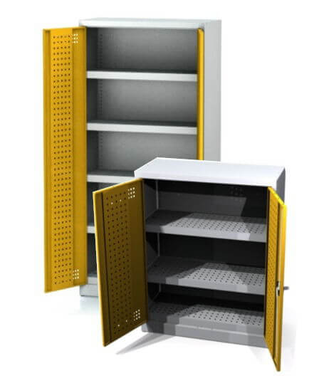 The environmental cabinets are used in industry, schools, service companies and laboratories in general. The chemical cabinets have a robust sheet steel construction with torsion-resistant, double-walled doors. The lock can be locked with a cylinder lock with handle and 3-point locking. The cabinets are available immediately from stock.