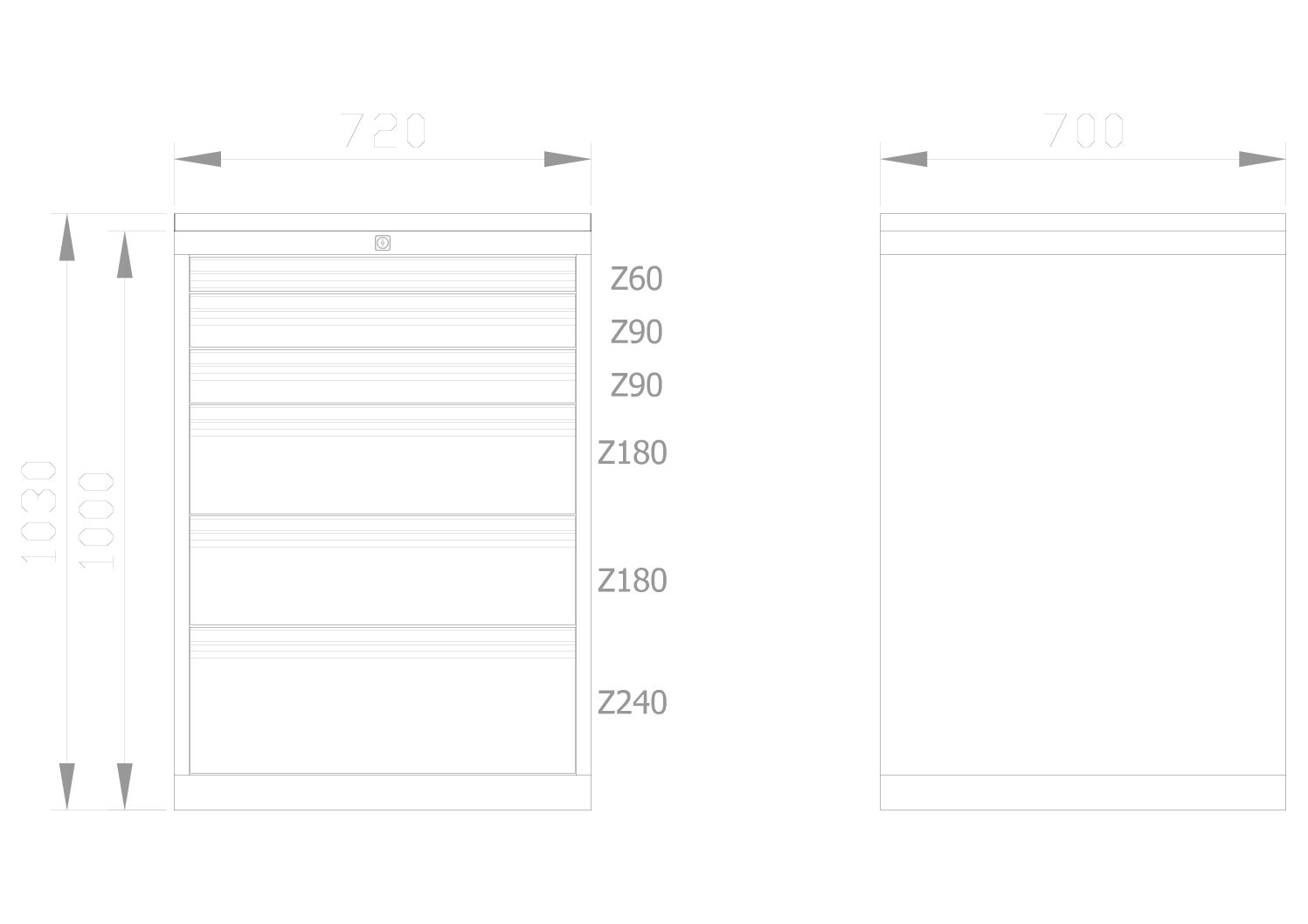 For service, maintenance, and internal logistics, the cabinet stands out thanks to its clear structure: the comfortable AL handle strips sit nicely in the hand and provide a labeling field. This allows drawers to be clearly identified—for example by area of use, machine, product group, or shift requirements. It reduces walking distances, speeds up material dispensing, and makes handovers within the team significantly easier. The powder-coated finish is robust in everyday use and helps maintain a neat, professional impression in work areas with customer contact or during audits.