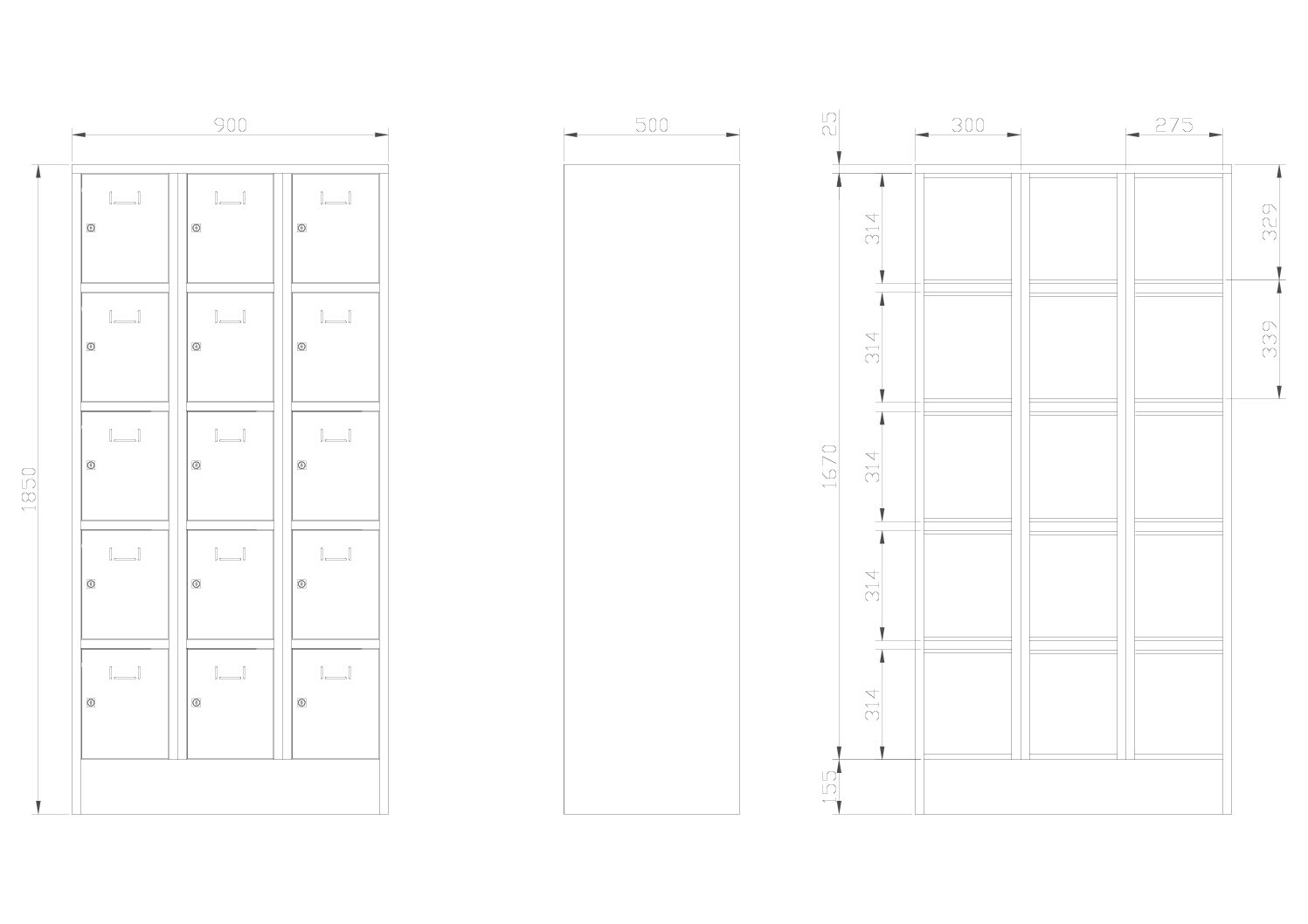 For schools, sports, and public facilities: backpacks, gym bags, and personal valuables can be stowed away quickly without things becoming cluttered. Three compartments with a total of 15 sections offer a good balance of capacity and structure, so even when it’s busy, everything has its place. Doors on internal rotating bolts are neatly guided and designed for frequent use. The high-quality powder coating helps maintain a well-kept appearance, even with regular contact and typical everyday wear marks.