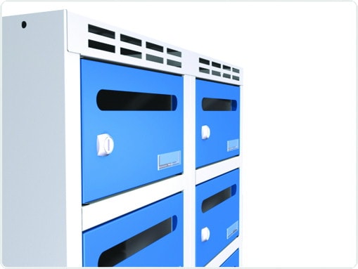 The doors are also fitted with label holders, enabling clear labelling and quick identification of the individual compartments. You have the option of choosing the colour of the doors to match the design of your premises.