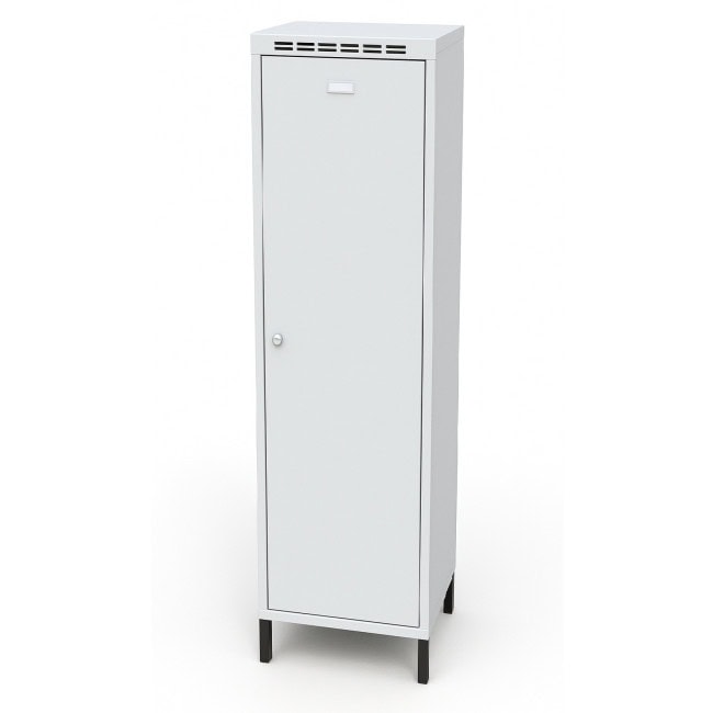 1920x500x520 mm (HxWxD), ski locker, one-piece, for 4 pairs of skis with ski poles and ski boots, galvanized sheet steel, hole in the bottom, closure with cylinder lock with 2 keys, body color light gray RAL7035, doors selectable, powder-coated
