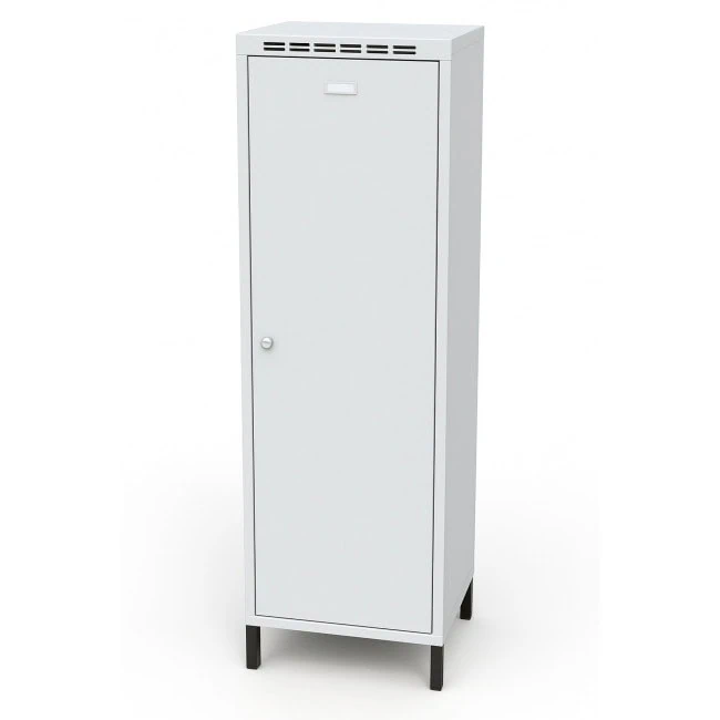 1920x650x520 mm (HxWxD), ski locker, 1-compartment, 6 pairs of skis with ski poles and ski boots per compartment, galvanised sheet steel, hole in base, lock with cylinder lock with 2 keys, colour body light grey RAL7035, doors selectable, powder-coated