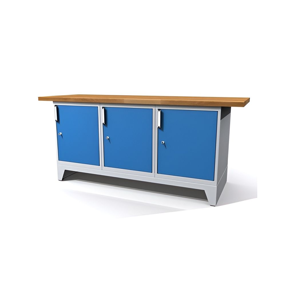The solid DPPNPO3 frame with feet provides a stable support for the three drawer cabinets and ensures that the entire workbench stands securely. The colour of the body and feet in light grey RAL7035 gives the workbench a modern and timeless design that blends harmoniously into any environment. The drawer fronts and doors can be selected in different colours so that the workbench can be individually adapted to personal taste and existing furnishings.