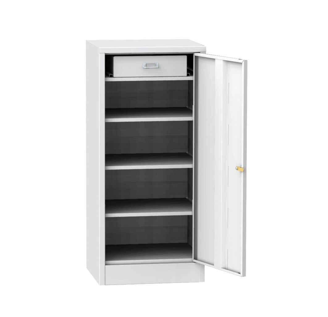 For workshops and trades businesses, efficiency and access take priority: a drawer for small parts, shelves for machines and accessories, plus a door that protects the contents from dust and unauthorized access. For schools, training centers, and clubs, easy organization is what counts: issuing materials becomes clear and manageable, inventory remains traceable, and the room immediately looks tidier. For offices with technical or facilities needs, the cabinet offers a clean place for spare parts, cables, consumables, and tools—without improvised storage.