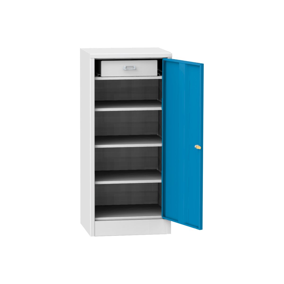For workshops and trades businesses, efficiency and access take priority: a drawer for small parts, shelves for machines and accessories, plus a door that protects the contents from dust and unauthorized access. For schools, training centers, and clubs, easy organization is what counts: issuing materials becomes clear and manageable, inventory remains traceable, and the room immediately looks tidier. For offices with technical or facilities needs, the cabinet offers a clean place for spare parts, cables, consumables, and tools—without improvised storage.