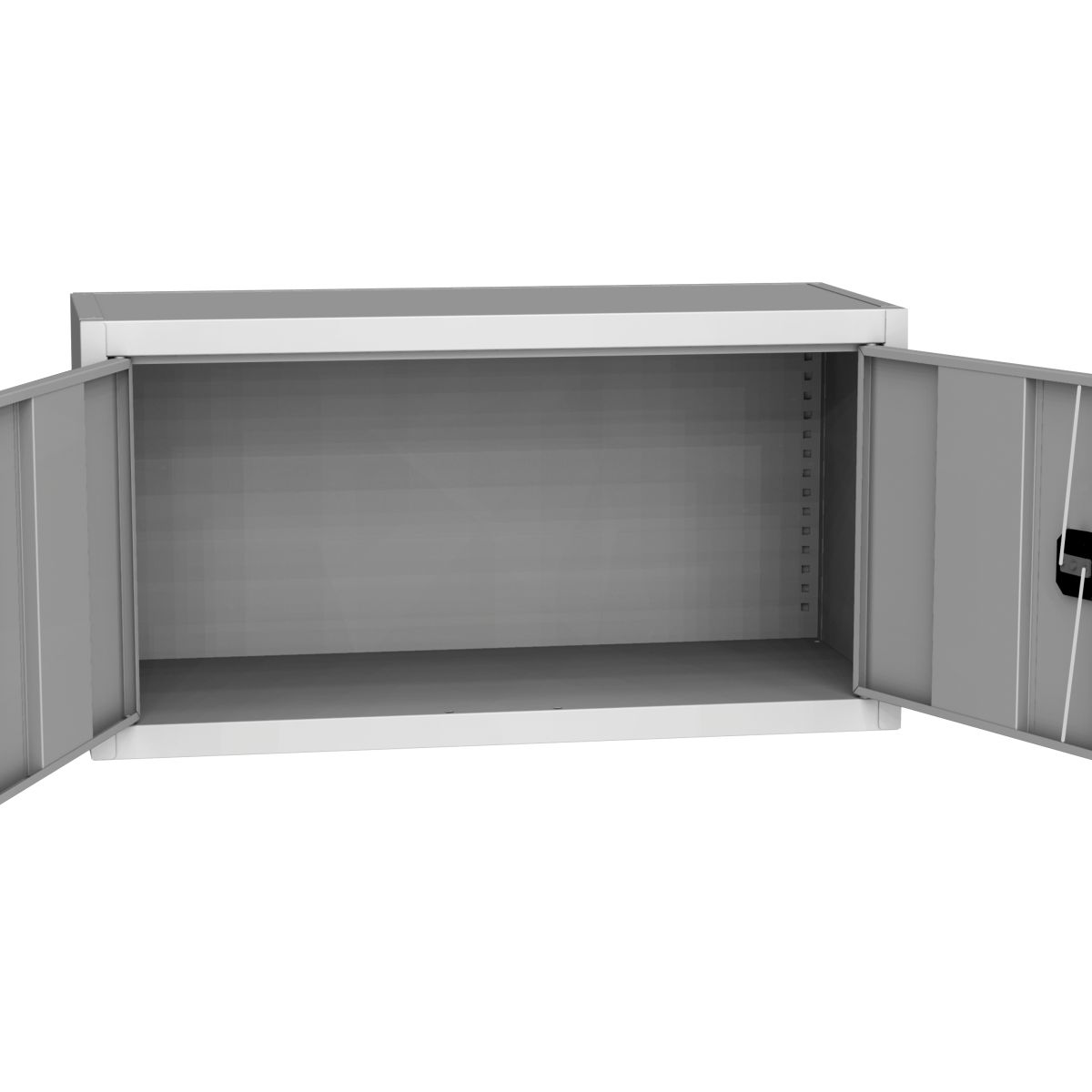 Reliability matters more in everyday use than flashy extras. With its sturdy welded construction, this cabinet is the ideal choice for spare parts, tool cases, consumables, or measuring equipment. Height-adjustable shelves let you configure the interior to suit anything from small boxes to larger containers. The light-grey, powder-coated steel finish is hard-wearing and blends seamlessly into almost any work environment—from plant rooms to spare-parts storage.