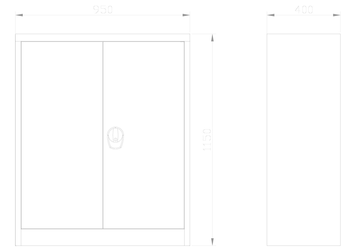 1150x950x400 mm (H x W x D), welded construction, 2x painted shelf, height-adjustable, load capacity 60 kg/shelf, two-point locking system, cylinder lock with rotating handle, cabinet doors reinforced in the center, body/doors RAL7035 light gray, powder-coated
